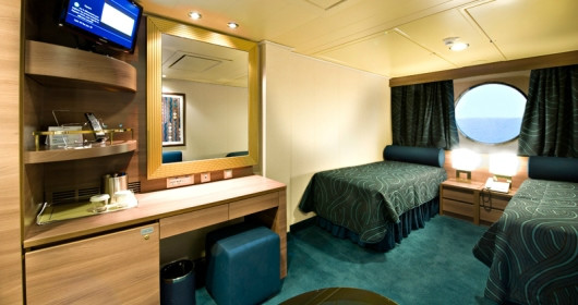 - Cabine Interna: Cama de Casal ou 02 Camas de Solteiro, Ar Condicionado, Penteadeira, Secador de Cabelo, Tv, Telefone, Cofre e Frigobar. Esta opção de Cabine não possui janela.