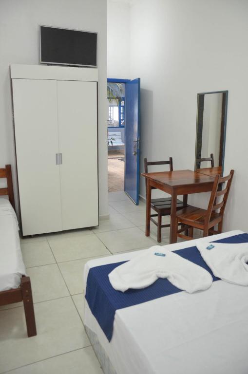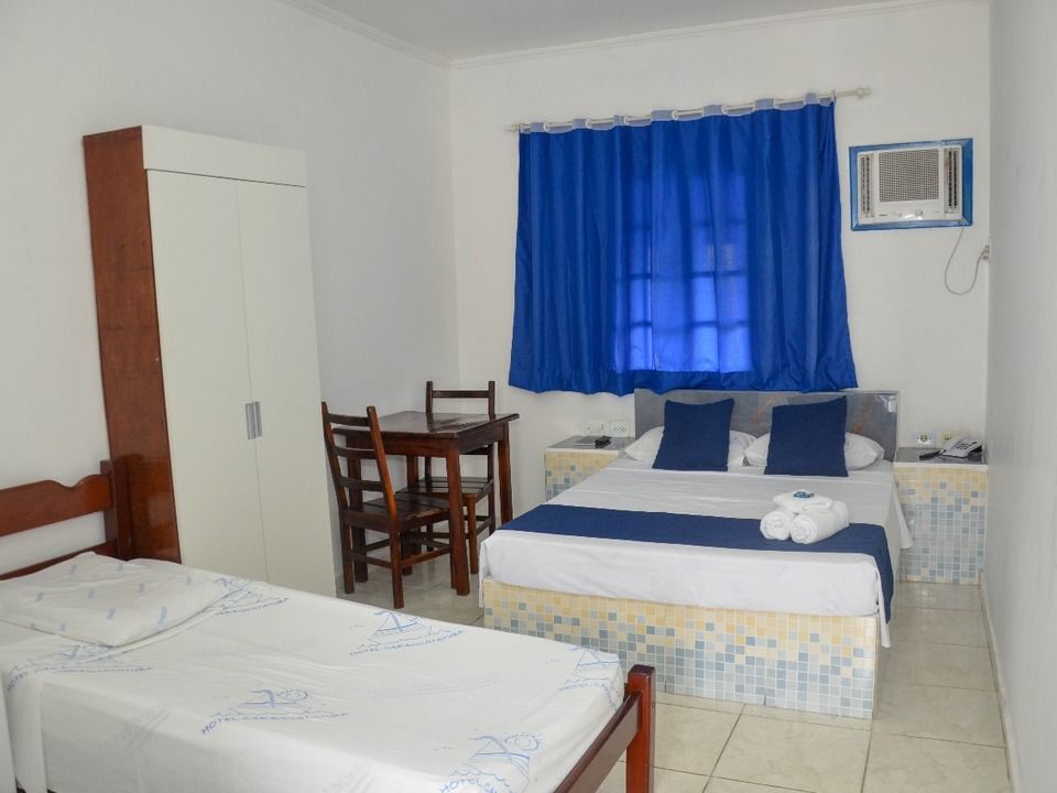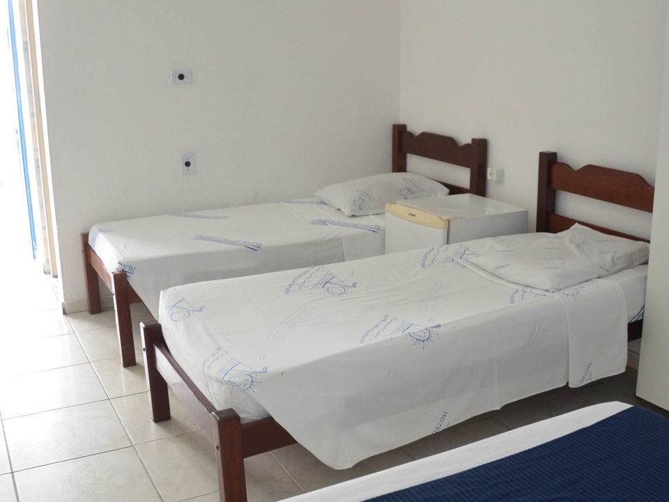 Apartamento Standard: 1 Cama de Casal, 1 cama de Solteiro, Ar Condicionado, Ventilador de Teto, Frigobar, TV a Cabo e Telefone.