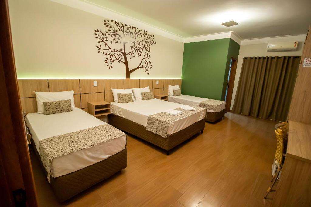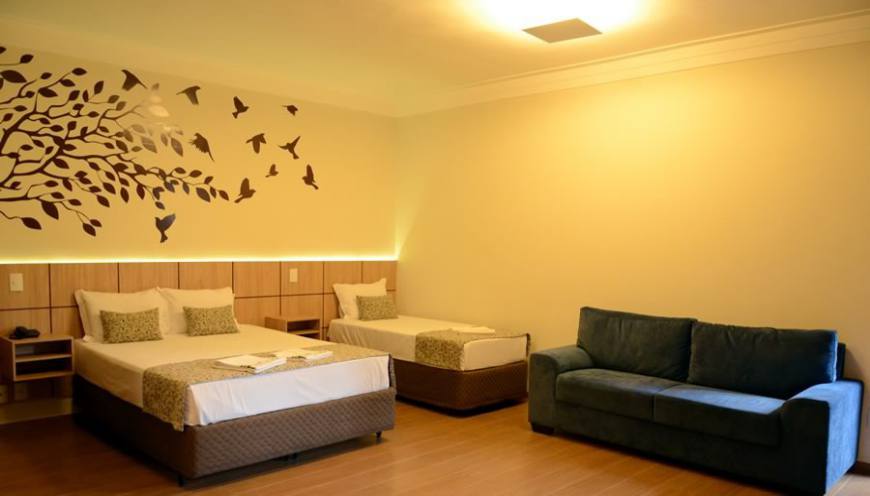 Quarto Standard: 1 Cama de Casal, 1 Cama de Solteiro, Tv a Cabo, Ar Condicionado, Cofre, Frigobar, Telefone, Secador de Cabelo, Roupa de Cama e Banho e Wi-Fi.