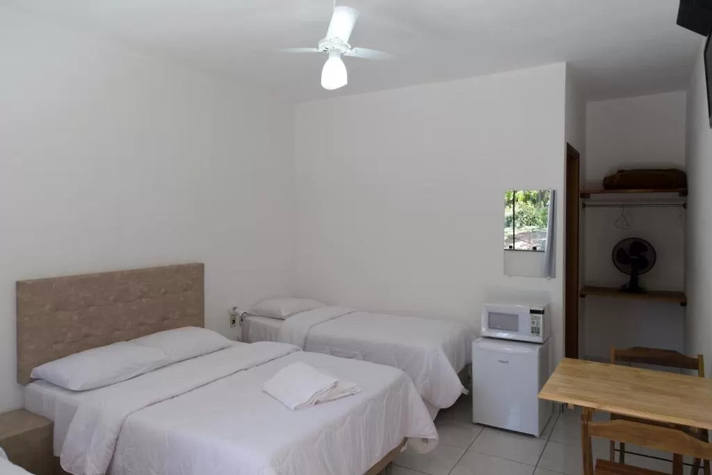 APARTAMENTOS STANDARD: Cama de Casal, 1 Cama de Solteiro, 1 Sofá Cama, Tv, Micro ondas, Frigobar, Ventilador.