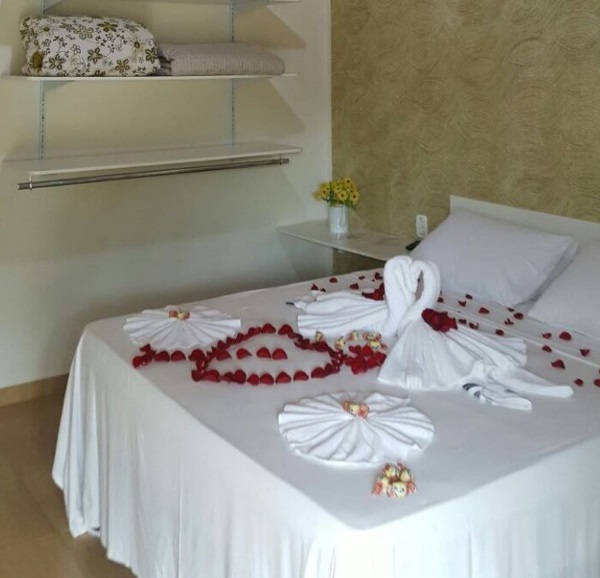 Chalés Luxo: Cama Queem Size, Microondas, Tv de Led, Ventilador de Teto, Frigobar, Roupa de Cama e Banho e Wi-Fi.