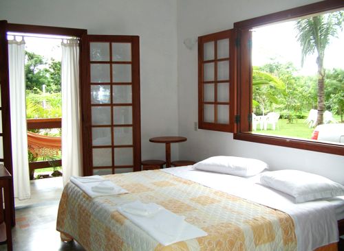 Jardim Térreo (Acomoda até 3 pessoas): Apartamento espaçoso com sistema de ventilação natural, janelas com telas anti-mosquitos, podendo ser montado das seguintes formas – Cama de Casal King Size ou Cama de Casal + 01 Cama de Solteiro ou 03 Camas de Solteiros, Frigobar, Tomadas voltagem 120v, Varanda e Wi-Fi.