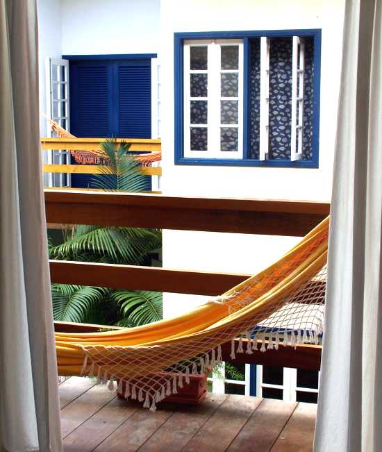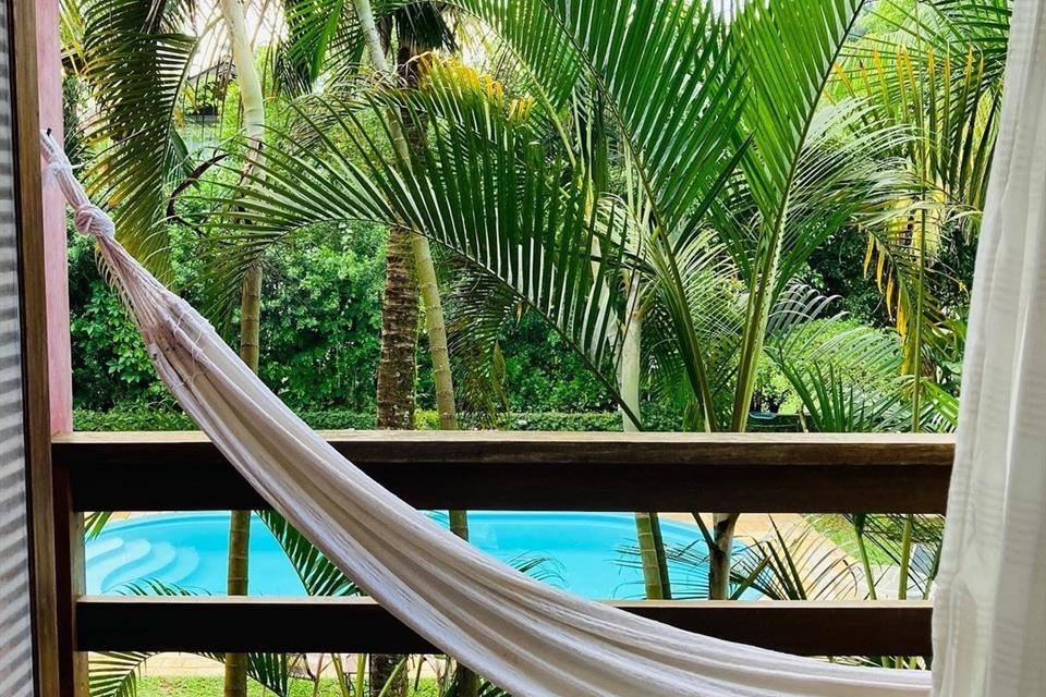 Jardim Superior (Acomoda até 3 pessoas): Apartamento espaçoso com sistema de ventilação natural, janelas com telas anti-mosquitos, no andar superior, podendo ser montado das seguintes formas – Cama de Casal King Size ou Cama de Casal + 01 Cama de Solteiro ou 03 Camas de Solteiros, Frigobar, Tomadas voltagem 120v, Varanda com Rede, Tv, Ventilador e Wi-Fi.