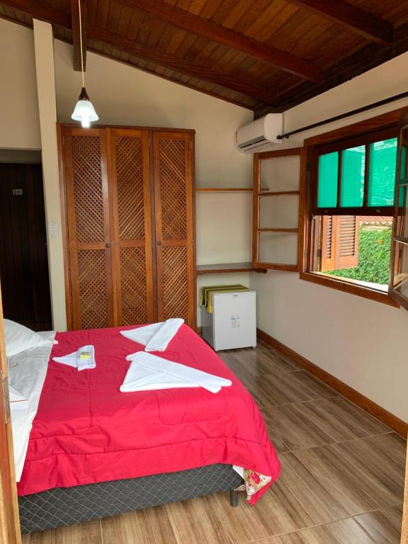 Apartamento Duplo Standard (Térreo): Cama de Casal, Roupa de Cama, Toalha, Tv, Frigobar e Ar Condicionado.