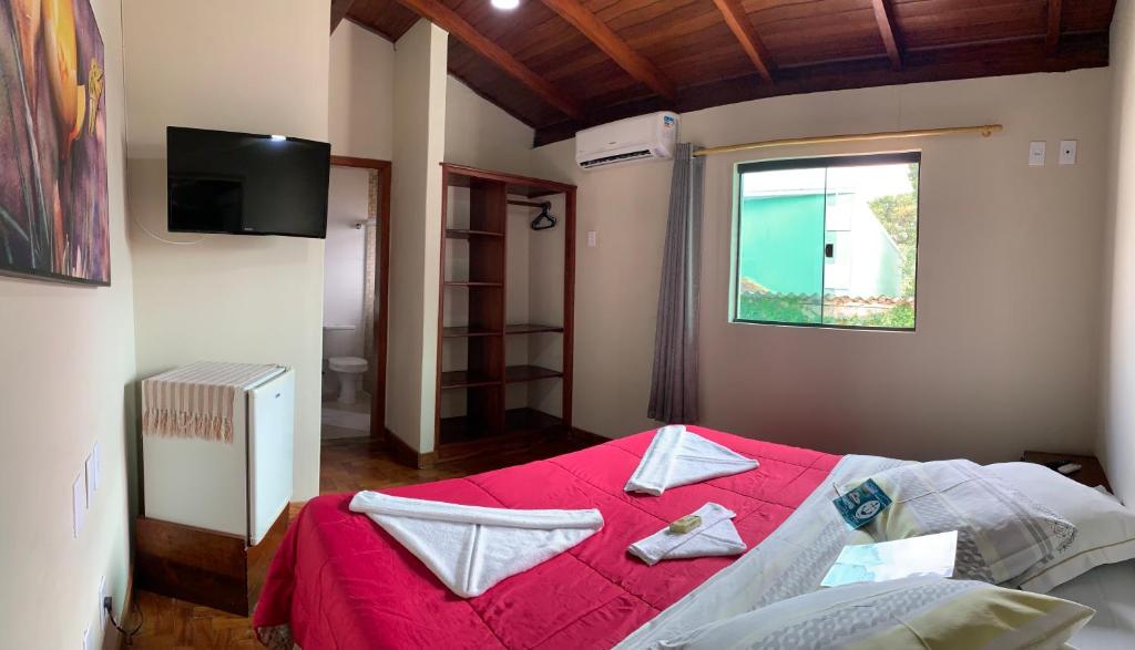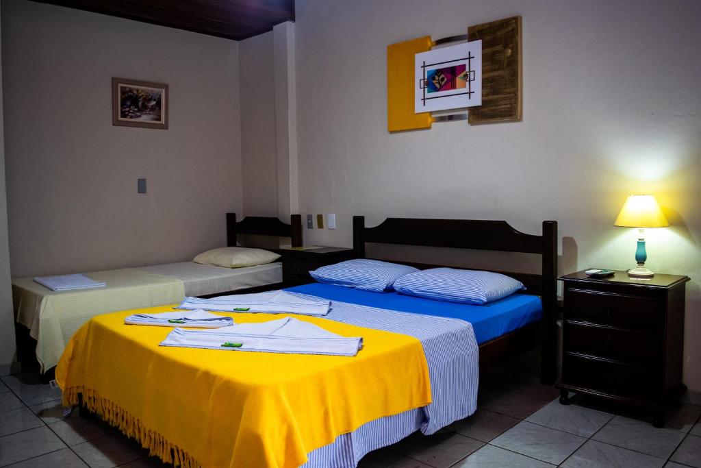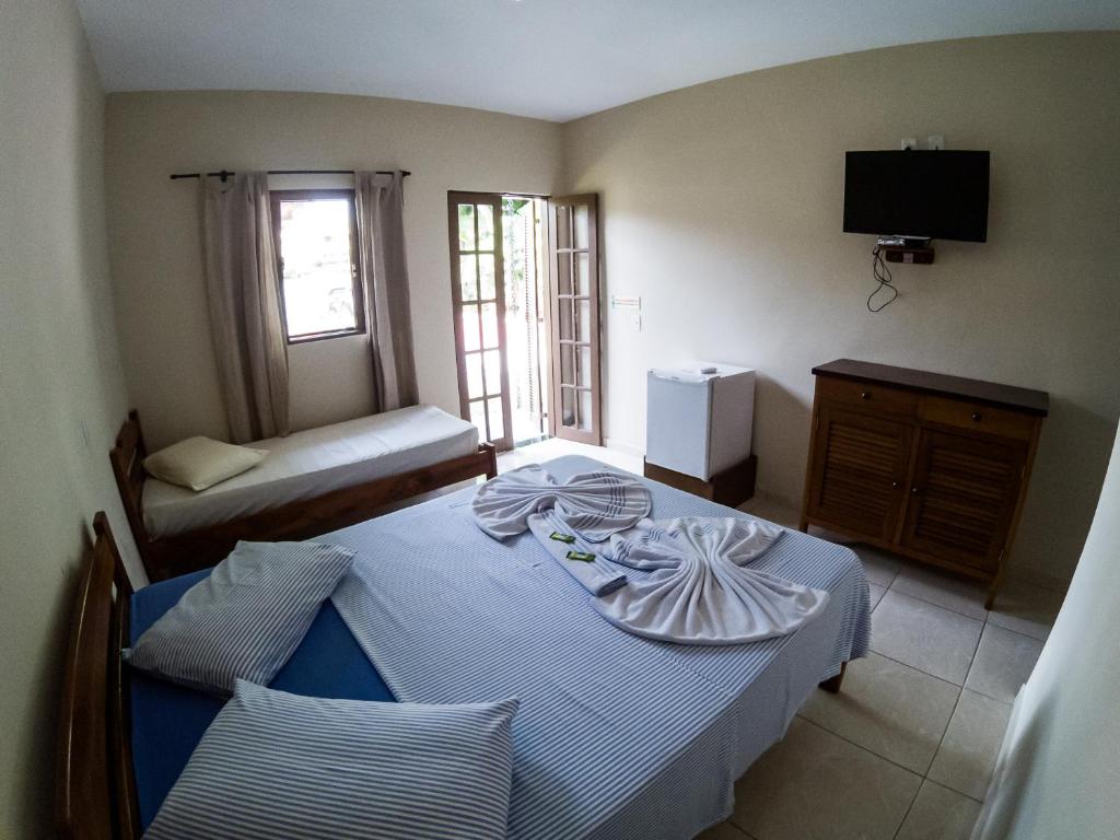 Apartamento Triplo Standard (Térreo): Cama de Casal, 1 Cama de Solteiro, Roupa de Cama, Toalha, Tv, Frigobar e Ar Condicionado.