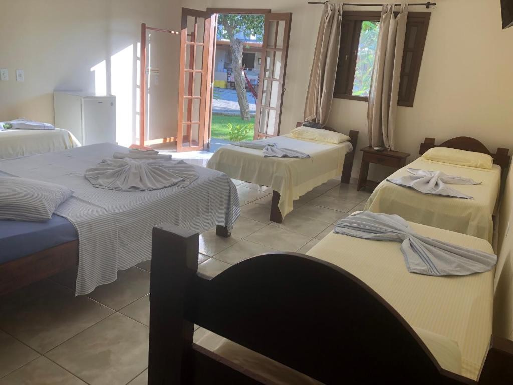 Quarto Família (Térreo): Cama Casal, 4 Camas de Solteiro, Roupa de Cama, Toalha, Tv, Frigobar e Ar Condicionado.