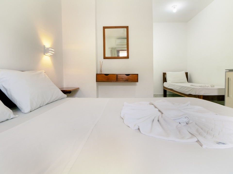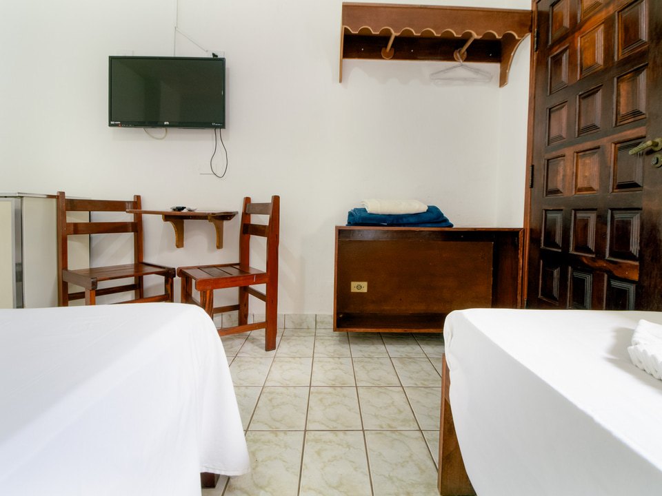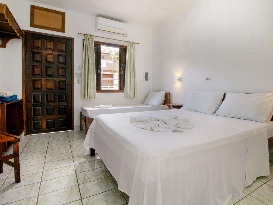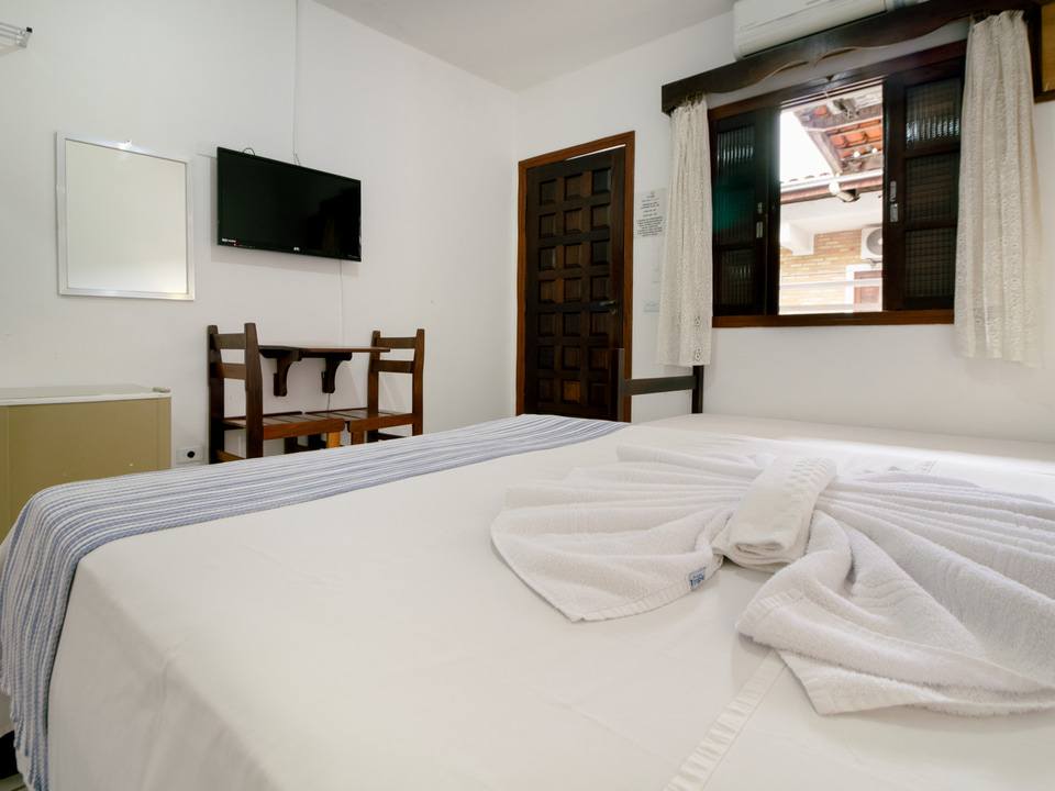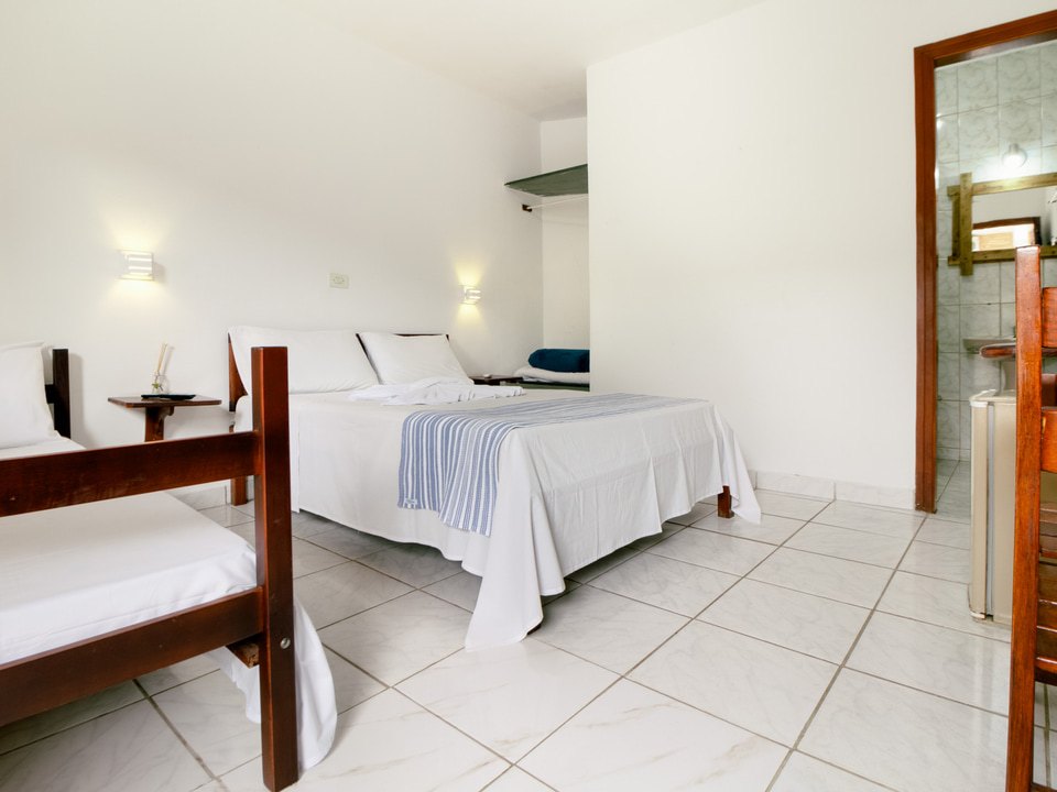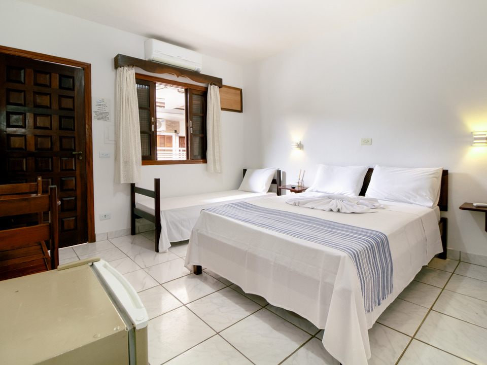 Acomoda até 3 pessoas. Cama de casal e uma cama de solteiro, frigobar, Wi-Fi, Tv de Led, Ar Condicionado, roupa de cama e banho.