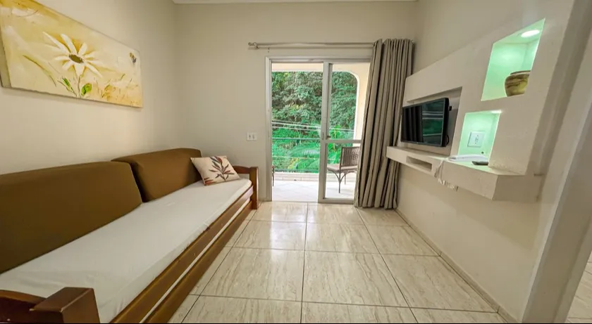 Acomoda até 4 adultos, com 2 camas de solteiro ou 1 cama de casal, ar-condicionado, área de estar com ventilador de teto, TV LCD a cabo, telefone, tomadas 120v, cofre, frigobar, Wi-Fi e Varanda.