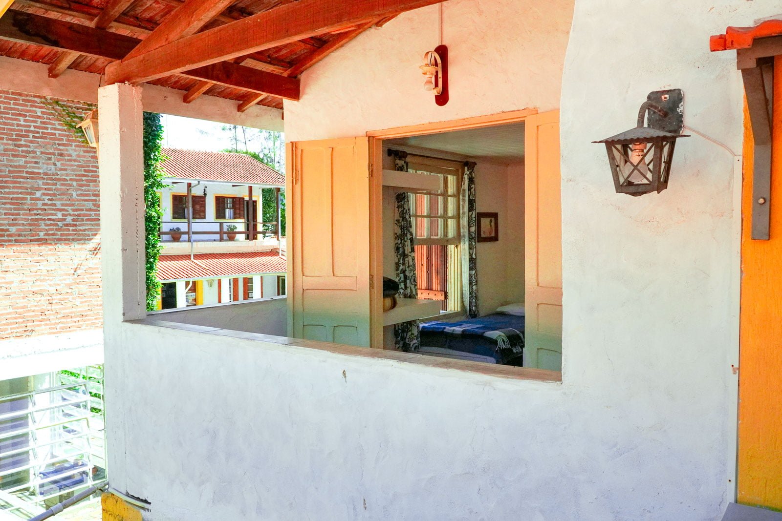 Acomoda até 2 pessoas. Cama de casal, aquecimento, Tv de led, Wi-Fi, frigobar, enxoval completo, chuveiro elétrico e vista do pátio interno.