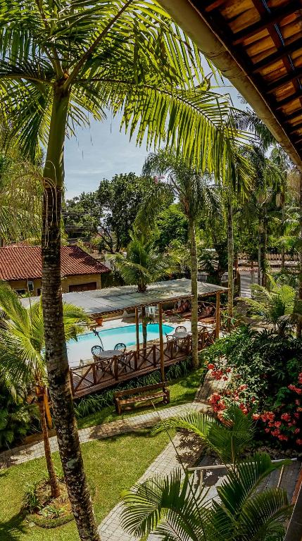 Acomoda até 4 pessoas. Este quarto oferece ar-condicionado, cama queen e uma bicama, varanda com vista para a piscina, TV de tela plana, ventilador e frigobar. O banheiro privativo inclui um chuveiro.